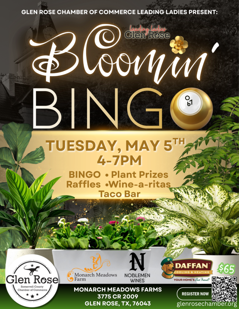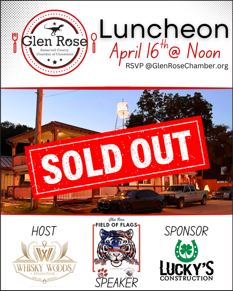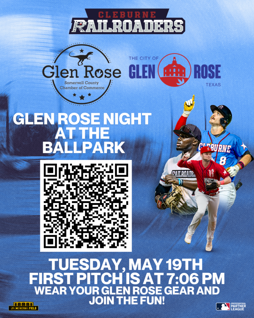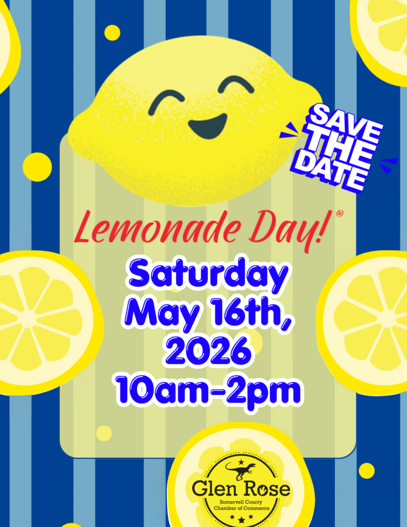 The Glen Rose Chamber of Commerce is dedicated to inspiring community growth and prosperity through providing a positive business environment, taking a leadership role in community affairs, being an information resource for its members, and creating a better quality of life for its businesses and citizens.