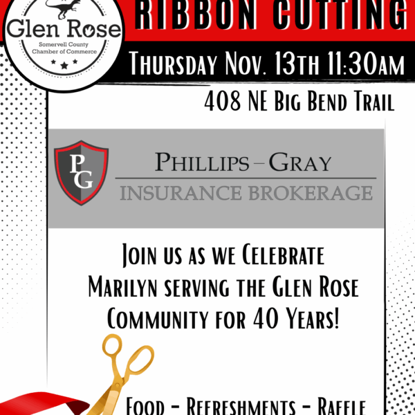 The Glen Rose Chamber of Commerce is your hub for vibrant community events! From networking opportunities at our Chamber Luncheons to celebrating local businesses with Ribbon Cuttings, there’s always something happening here. We also host workshops, mixers, and special events designed to connect, inspire, and grow our community.